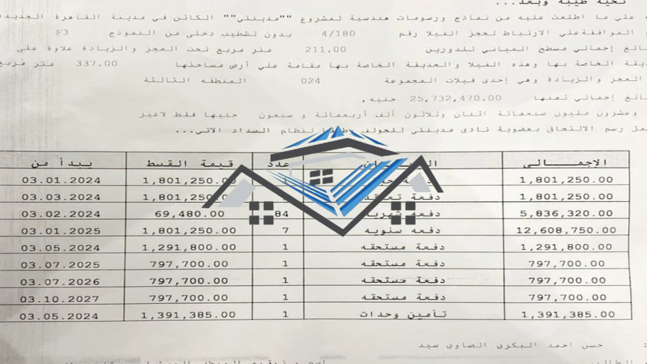 فيلا للـبيع - تقسيط في مدينتي مطلوب 25732000 جنية مساحة 211 متر تشطيب بدون 4 غرف نوم - 3 حمام فيو جاردن - الدور