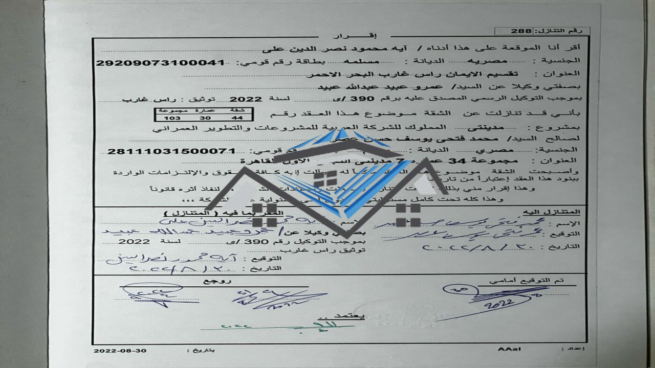 شقة للـبيع - تقسيط في مدينتي مطلوب 5000000 جنية مساحة 116 متر تشطيب شركة 3 غرف نوم - 2 حمام فيو جاردن - الدور الرابع